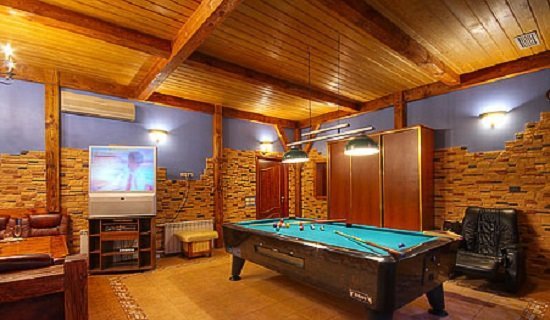 Не хочется в бассейн? Не проблема! Вместо этого можно передохнуть в нашей комнате отдыха. Мы постарались создать здесь комфортный, стильный интерьер из максимально натуральных, экологичных материалов, выбрать мебель, которая будет одновременно удобной и приятной глазу. Надеемся, что вам понравится! Для создания настроения у нас есть бильярд, камин и караоке. Также у нас вы можете заказать блюда русской кухни. Только не забывайте, что плотная трапеза непосредственно перед посещением парной - это не самая хорошая идея, согласно мнению врачей. А вот после парной она совсем не повредит!
